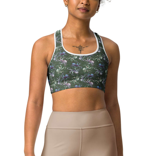 Octopus Splats: Racerback Swim Bra in Muck Monster Green