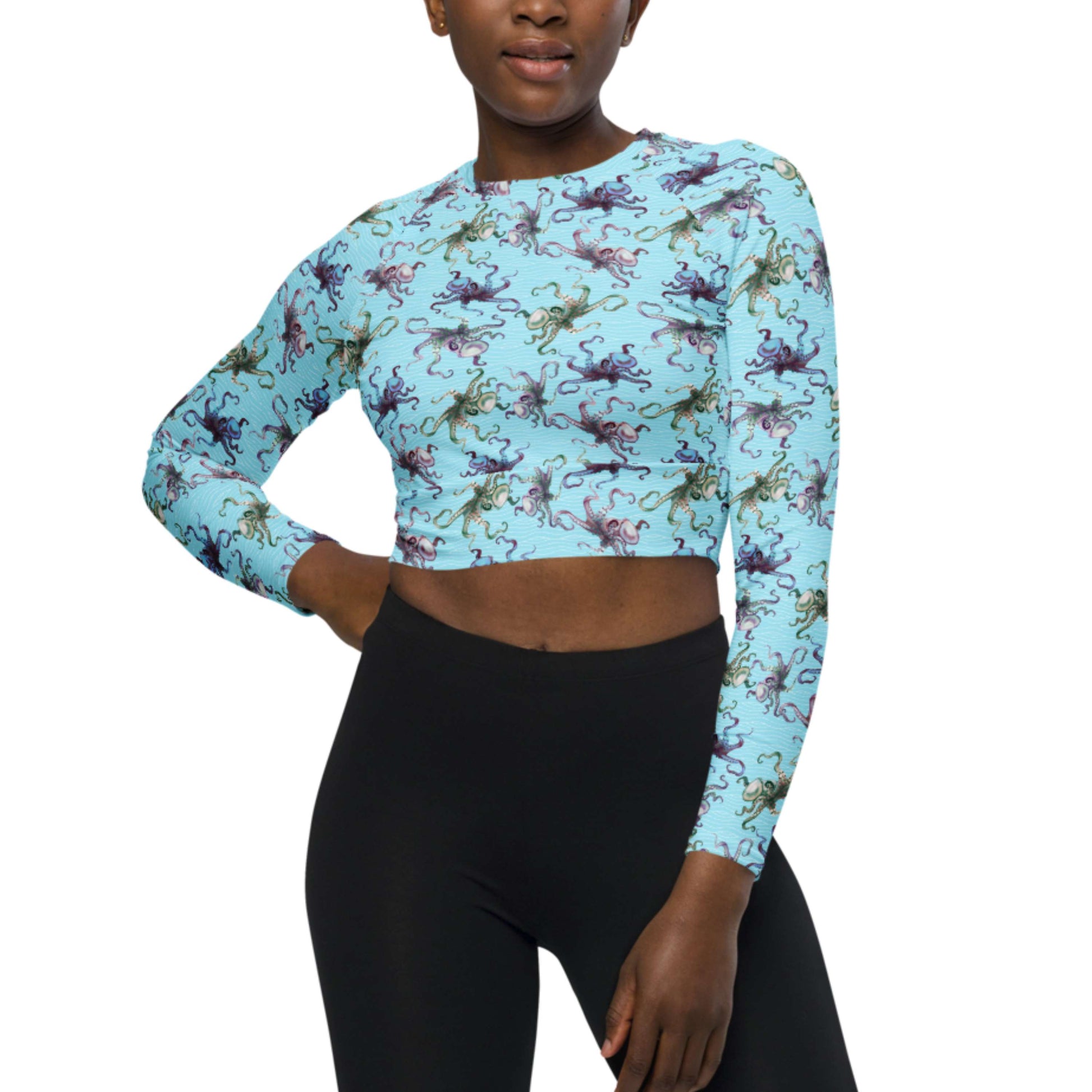 Octopus Splats: Crop-Top Rashguard in Blue Chill