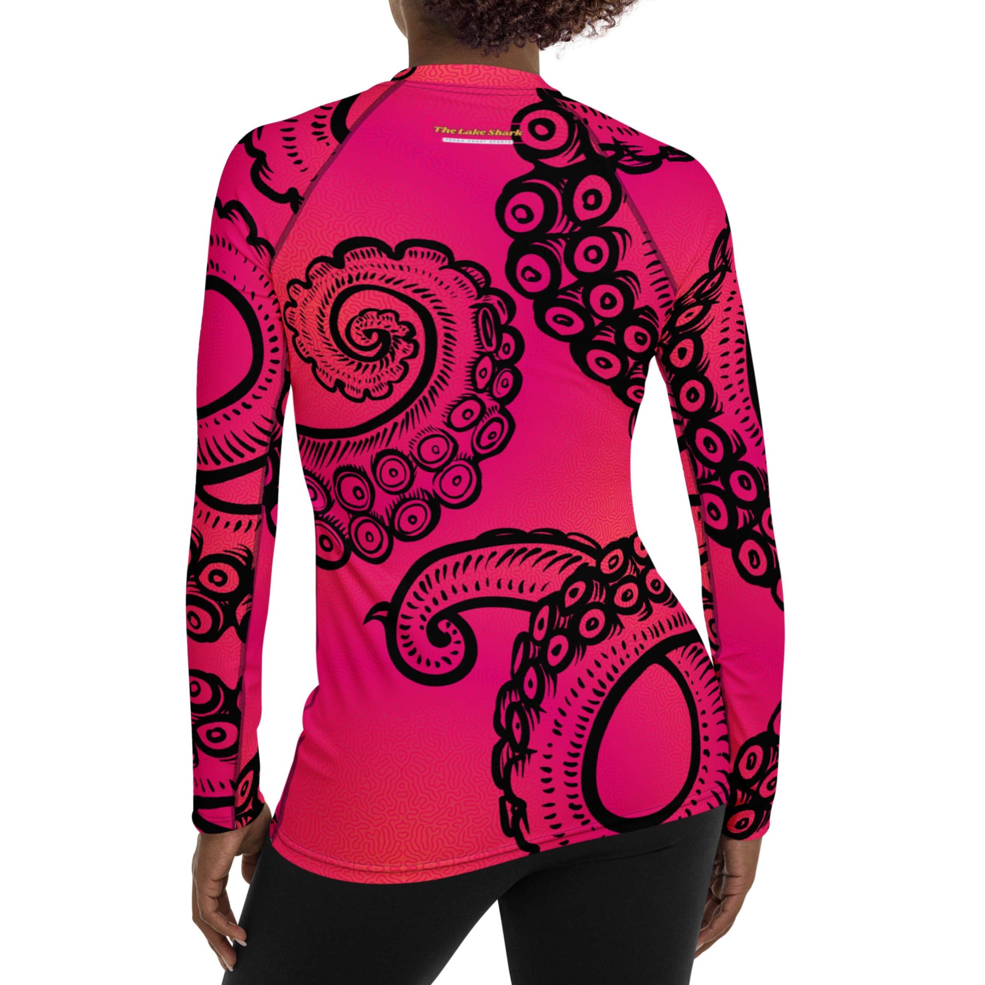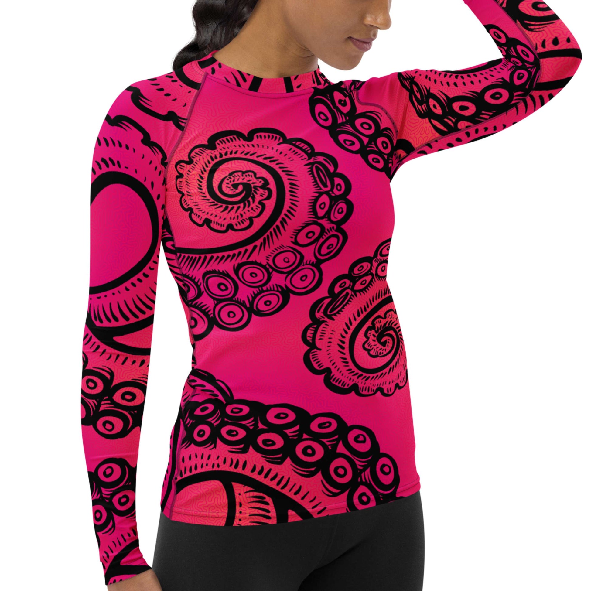 Tentacle Twist: Pink Octopus Women's Rash Guard Top